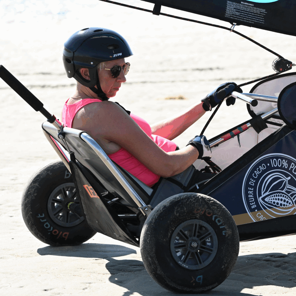 Dernière arrivée au sein de l’équipe Blok’n’stock, Christel incarne la volonté et l’envie d’ouvrir la pratique du blokart et du char à voile aux personnes en situation de handicap. Déterminée, compétitive et inspirante, elle souhaite porter haut les couleurs de l’inclusion sur les plages du Nord.